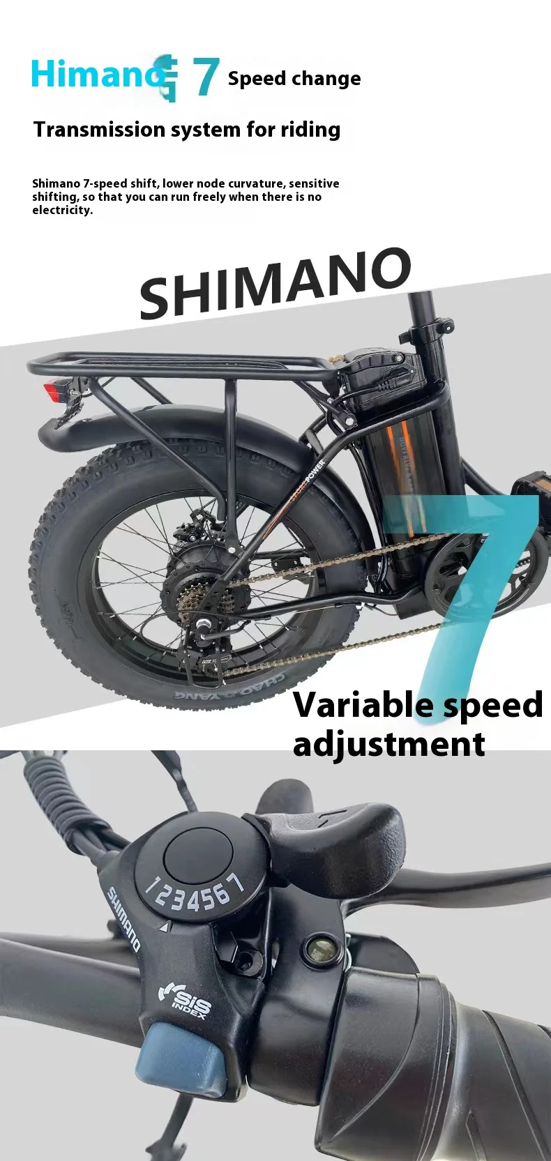Ride smarter with a suite of intelligent features. The Aroefa Fat-Tire Pro includes an LCD display to track your speed, mileage, and battery life. With Bluetooth connectivity and optional voice control, you can customize your riding experience and stay connected on the go. The 7-speed gear system allows you to easily adapt to any riding condition, from city cruising to trail blazing.