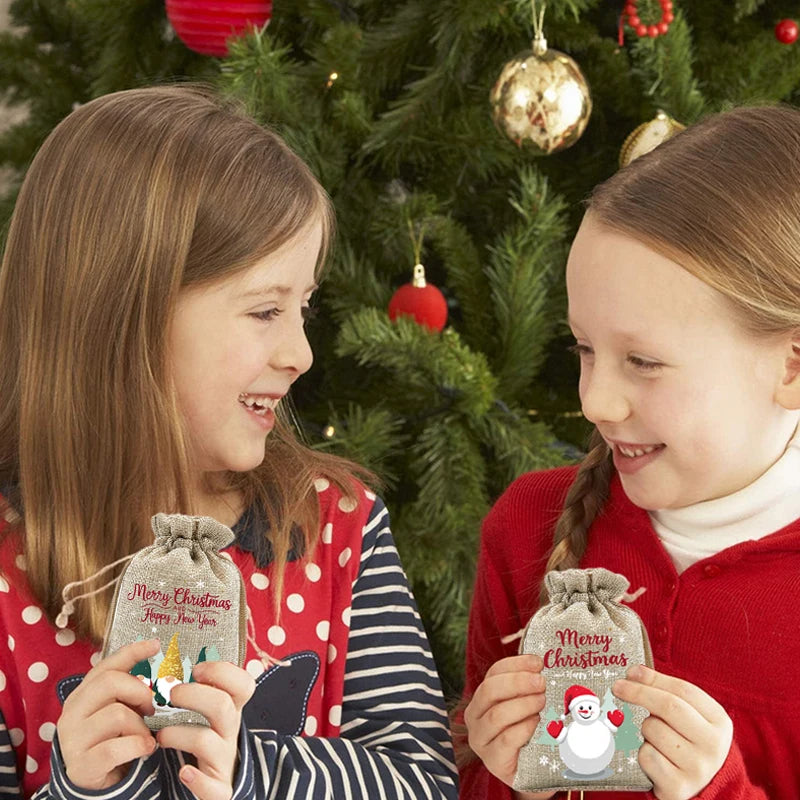 6 Pcs Christmas Small Burlap Bags With Drawstring, Burlap Gift Bags Christmas Treat Sacks Gift Wrapping Bags