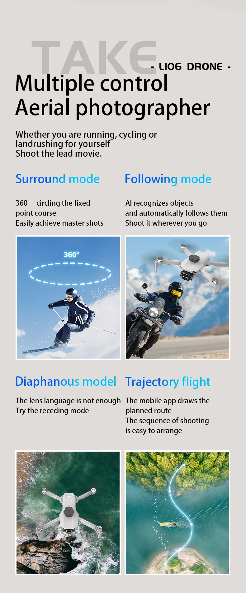 Forget the stress of learning—the L106 features Altitude Hold Mode and Optical Flow positioning for incredibly stable flight. The powerful Brushless Motor ensures durability and efficiency, while functions like One Key Takeoff/Landing and Headless Mode make controlling the drone intuitive right out of the box.