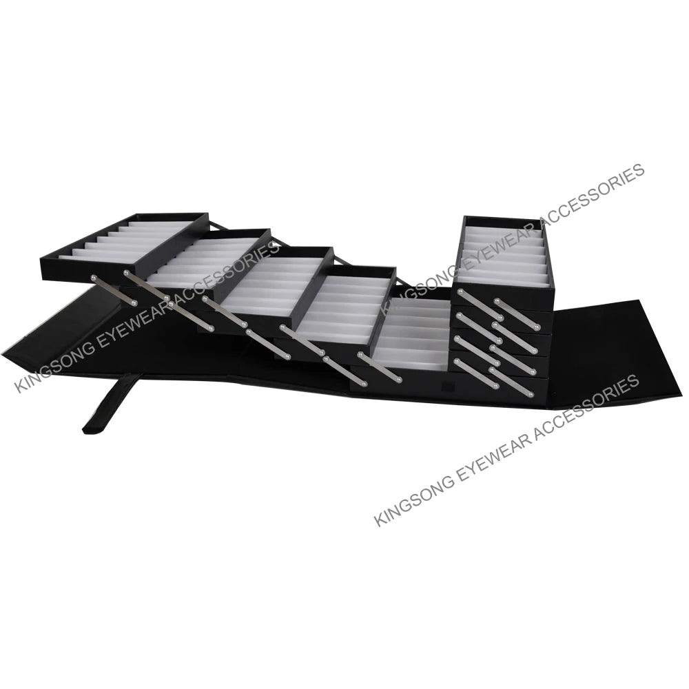 Coded lock Foldable Portable Eyeglass Eyewear Sunglasses Accordion Suitcase Display Extendable Brief Case Hold 80pcs of glasses