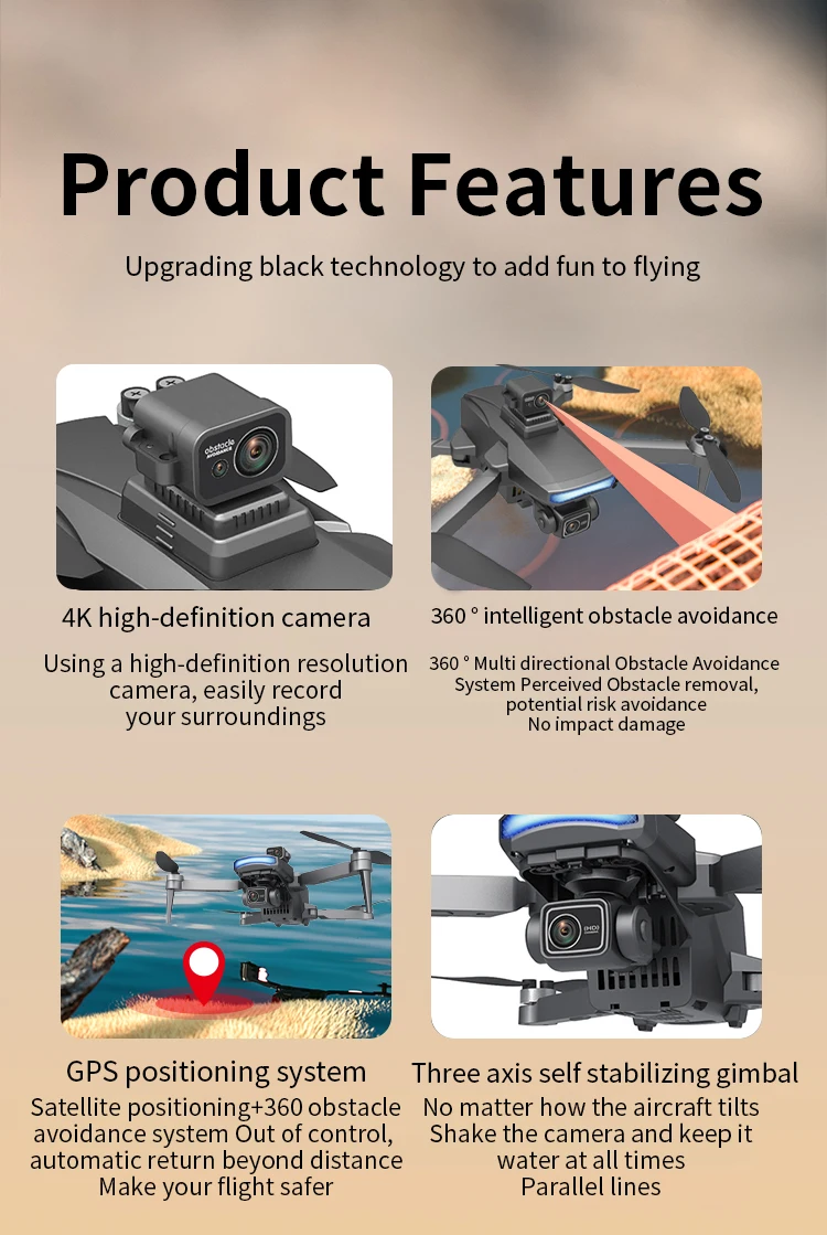 Step into advanced aerial photography with the Aroefa VisionPro. This sub-$250g drone is packed with professional features that make flying easy and cinematic. Capture incredibly stable video with the 3-Axis Gimbal and a 4K UHD Camera. Fly with confidence thanks to Intelligent Laser Obstacle Avoidance and GPS, ensuring a safe journey. The Brushless Motor delivers up to 30 minutes of flight time, and the Remote Control with a built-in 4.5-inch Screen gives you crystal-clear viewing without needing a phone. It's the perfect foldable drone for stunning, worry-free flights.