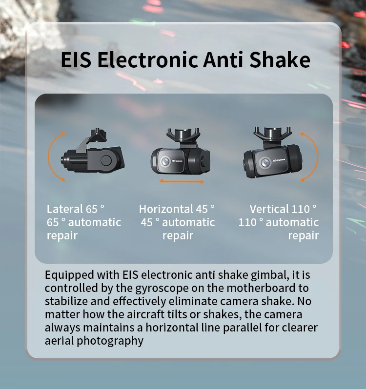 Three - axis mechanical self - stabilizing head+ Self-stabilizing electronic anti-shake Lens