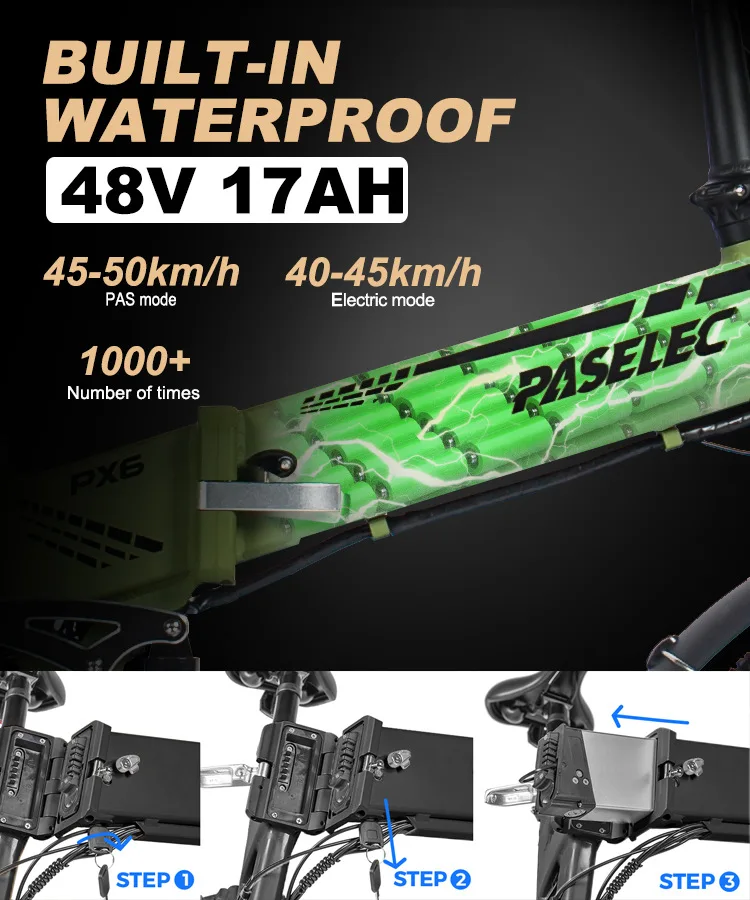 The Aroefa Trail-Fold is built to perform. It features a powerful 500W brushless rear hub motor and a robust 48V 10Ah lithium battery, providing a top speed of 30-50 km/h and an impressive range of over 60 km on a single charge. With an exceptional 21-speed gear system, you have the flexibility to conquer any incline or terrain, while the 70-80 Nm of torque ensures you have the power to push through tough conditions.