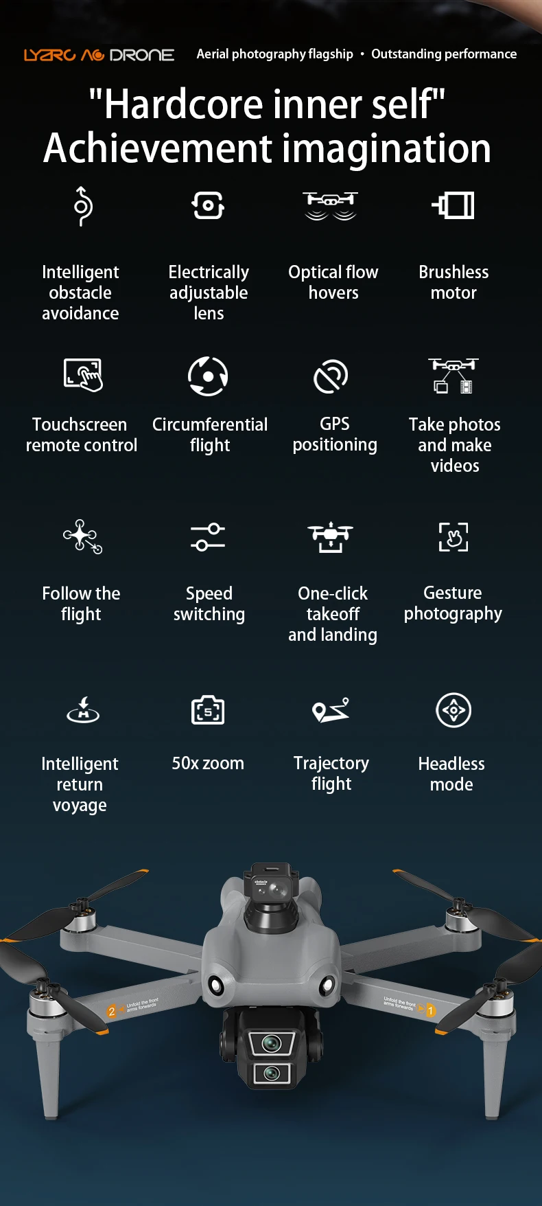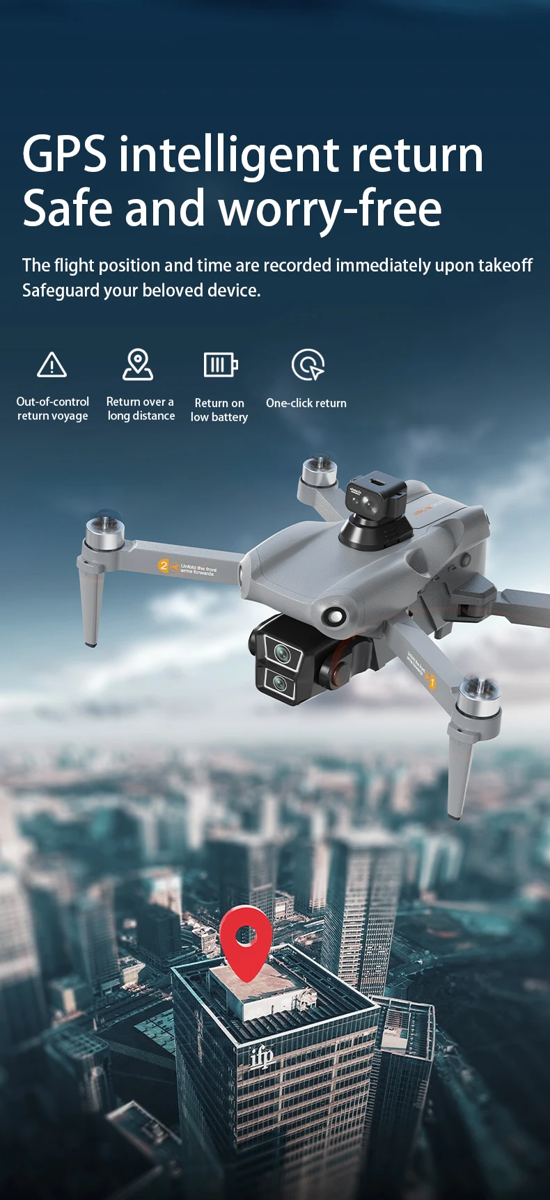 • Navigation: GPS Positioning, One-Key Return, Altitude Hold