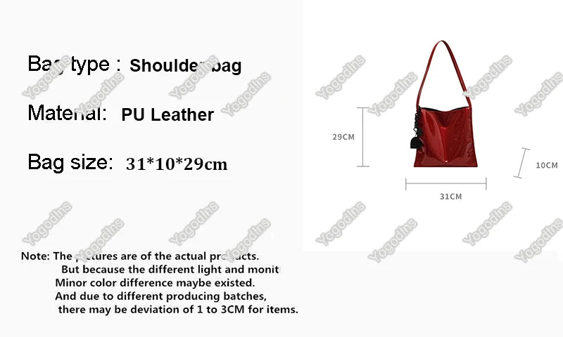 Purse Casual Travel Shopping Totes Solid Color Patent Leather Women Fashion Shoulder Bag Ladies Simple Luxury Handbag