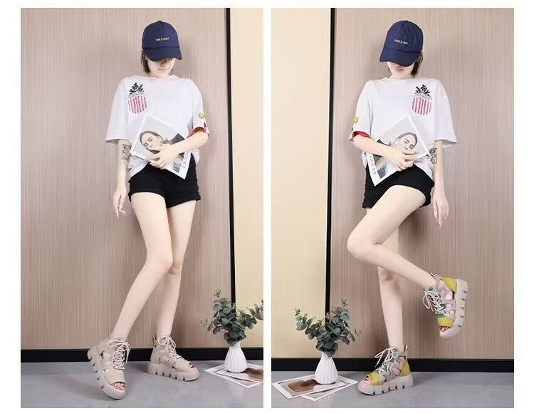Sandal Boots Women's Retro Platform Lace-up Fashion Hollowed-out Breathable Casual High-top